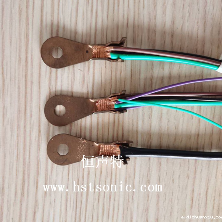 新能源汽车线与端子超声波点焊机焊接效果牢固,表面痕迹齿形均匀,无毛刺。